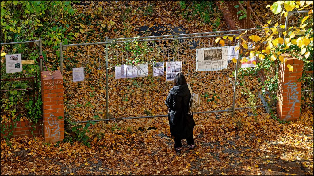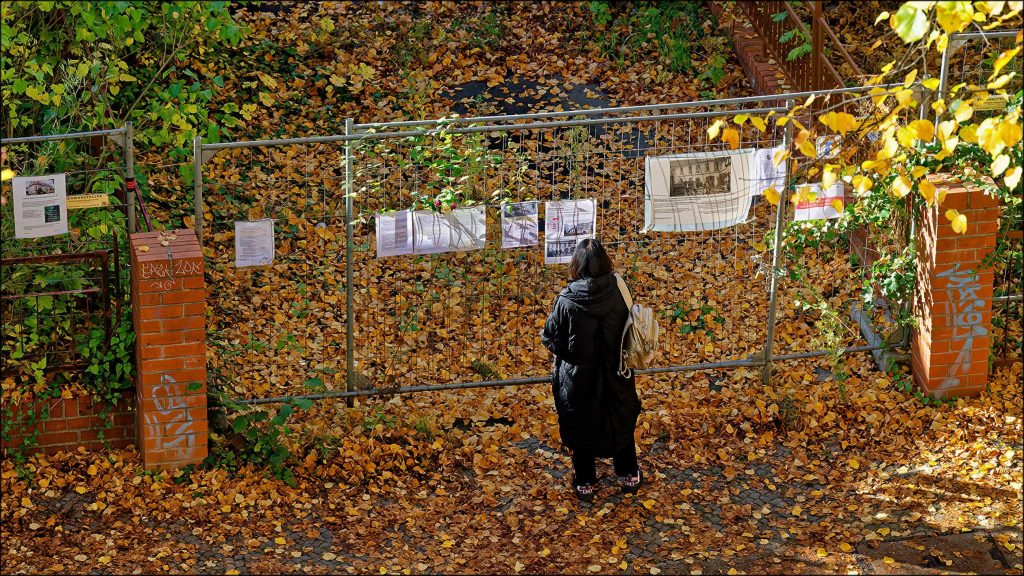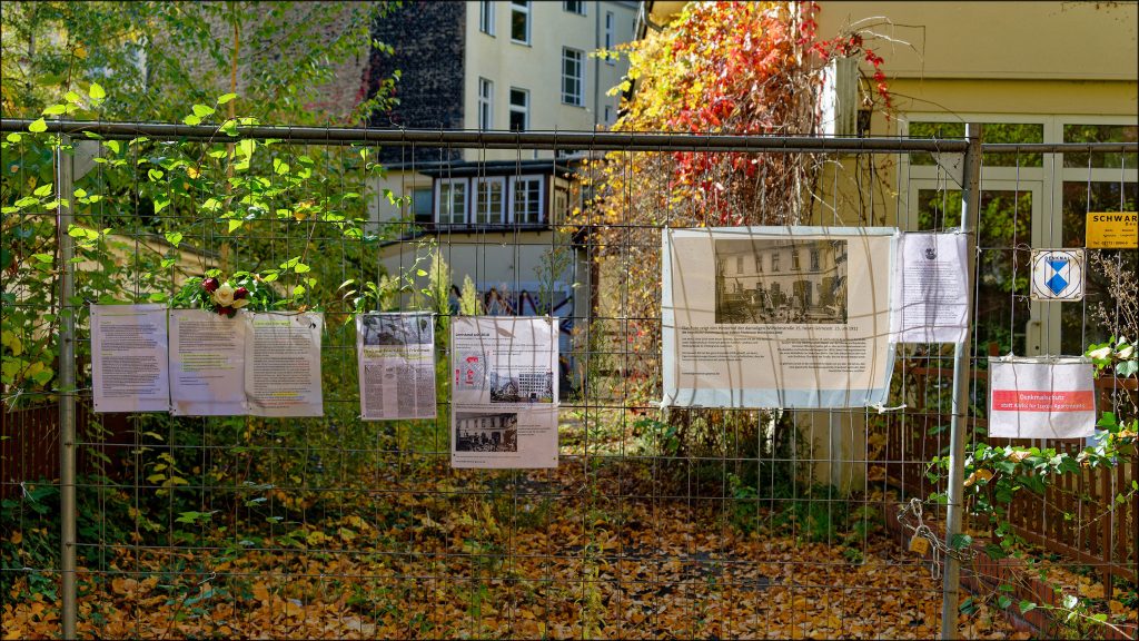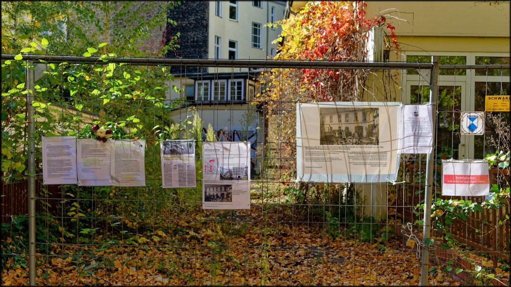 Infoblätter am Absperrgitter zur Zufahrt Görresstraße 23