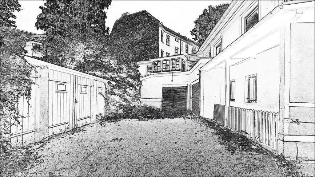 Strichzeichnung des Hinterhofs in der Görresstraße 23