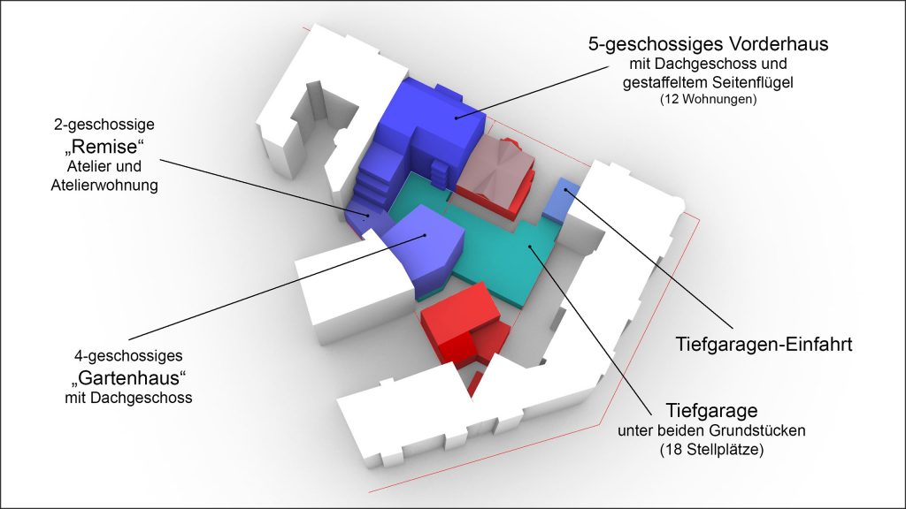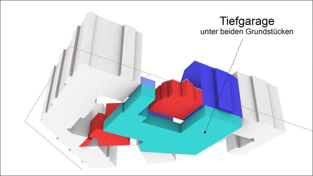 - Untertunnelung der Grundstücke 21+23 mit Tiefgarage